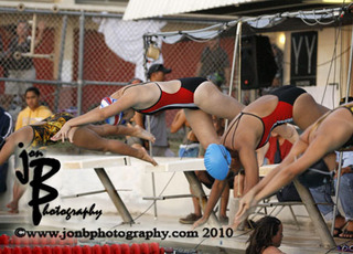 Madeline Jamora of Kapolei and Daren Choi of Pearl City each won two races. Jamora took the girls 50-yard Freestyle in 25.06 seconds and the girls 100-yards Backstroke in 1:02.25. Choi captured first place in the boys 50-yard Freestyle in 21.76 seconds and the boys 100-yards Backstroke in 51.80. Matt Velasco was the lone winner for Kalani, securing a victory in the boys 100-yard Butterfly in 55.01 seconds. Jayson Hagi of Kapolei won the 500-yard Freestyle in 4:50.21.